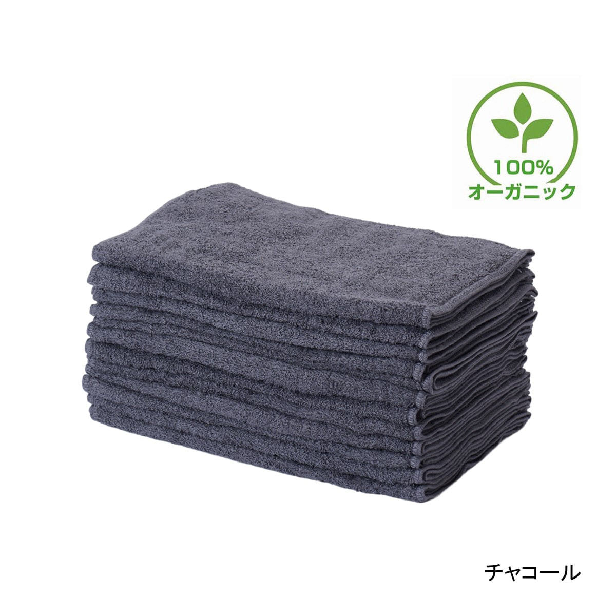 【ホテル仕様】オーガニックコットンタオル 34×85cm 12枚入り(チャコール)
