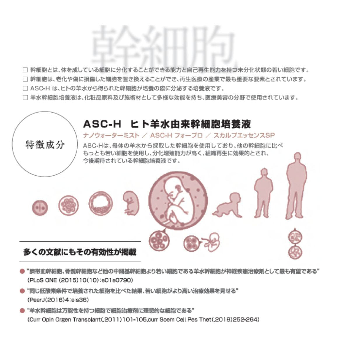 水、BG、プロパンジオールヒト羊水細胞順化培養液、カプリリルグリコール、1,2-ヘキサンジオール、ヒアルロン酸Na,ポリグルタミン酸、アスコルピルグルコシド、グレープフルーツ果皮油、水酸化Na,クエン酸Na,クエン酸、水素