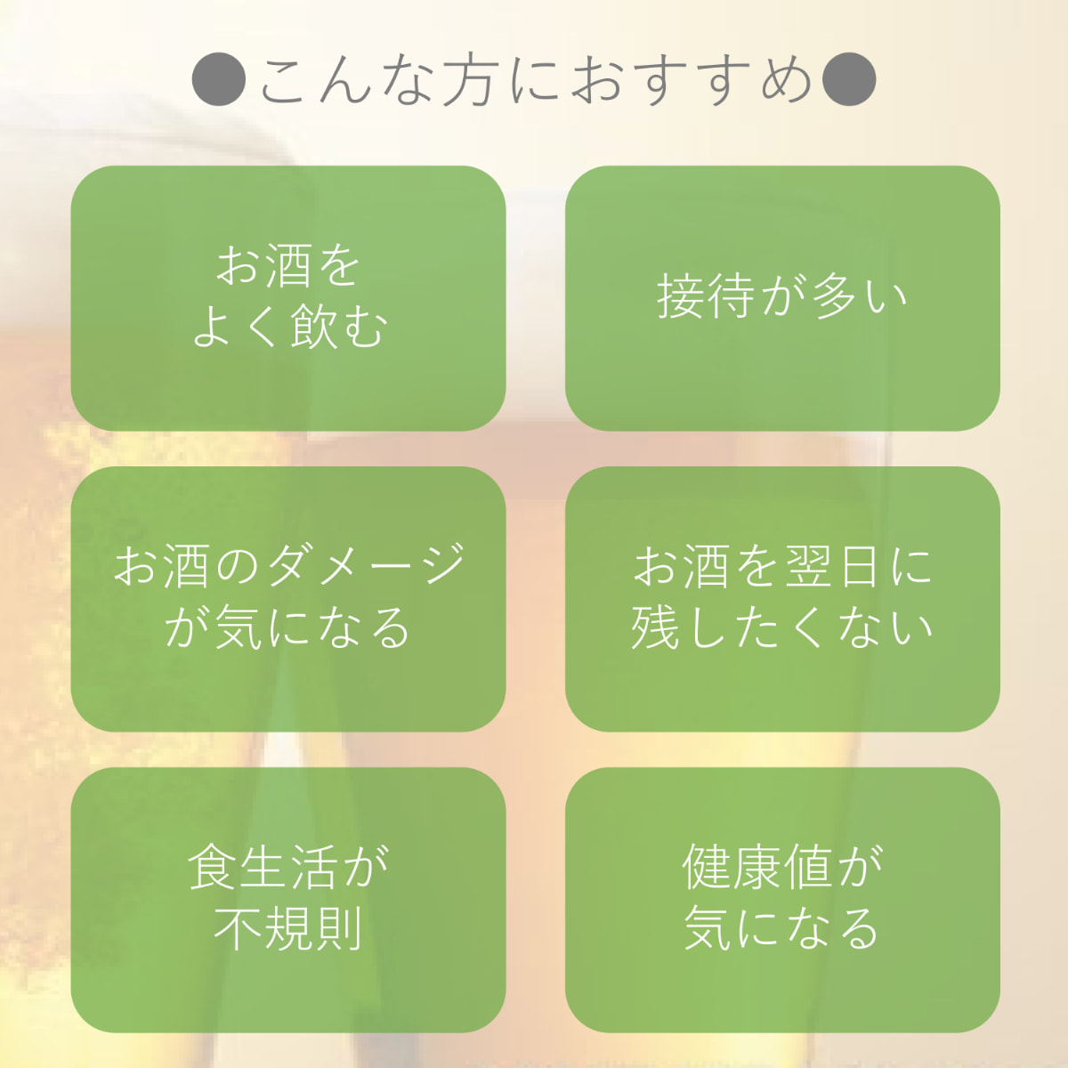 お酒を翌朝まで残したくない方のアフターケアや事前の対策に。