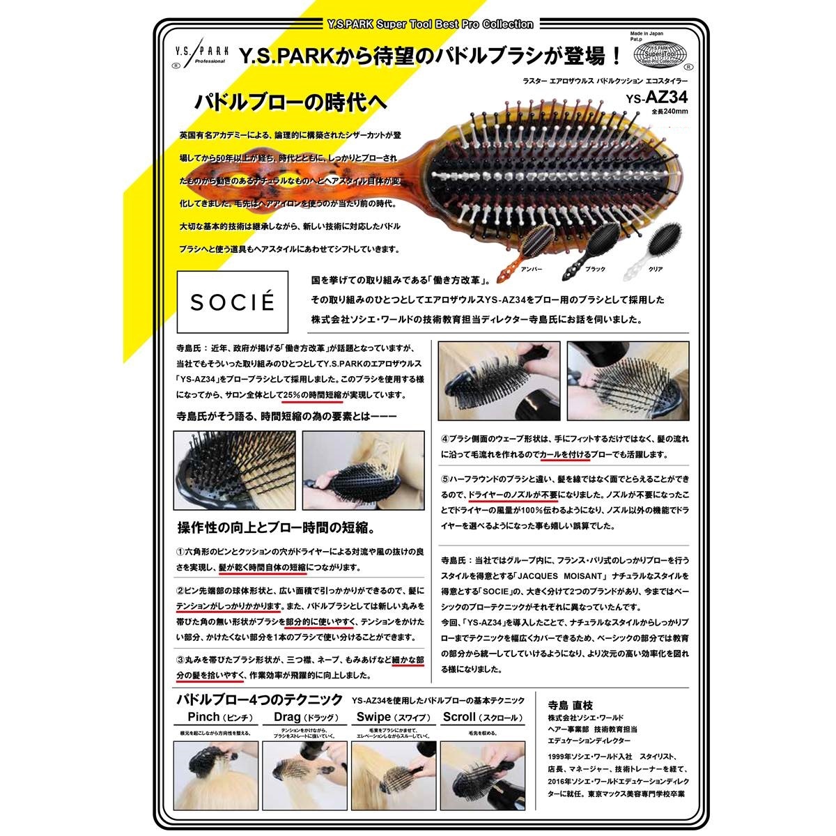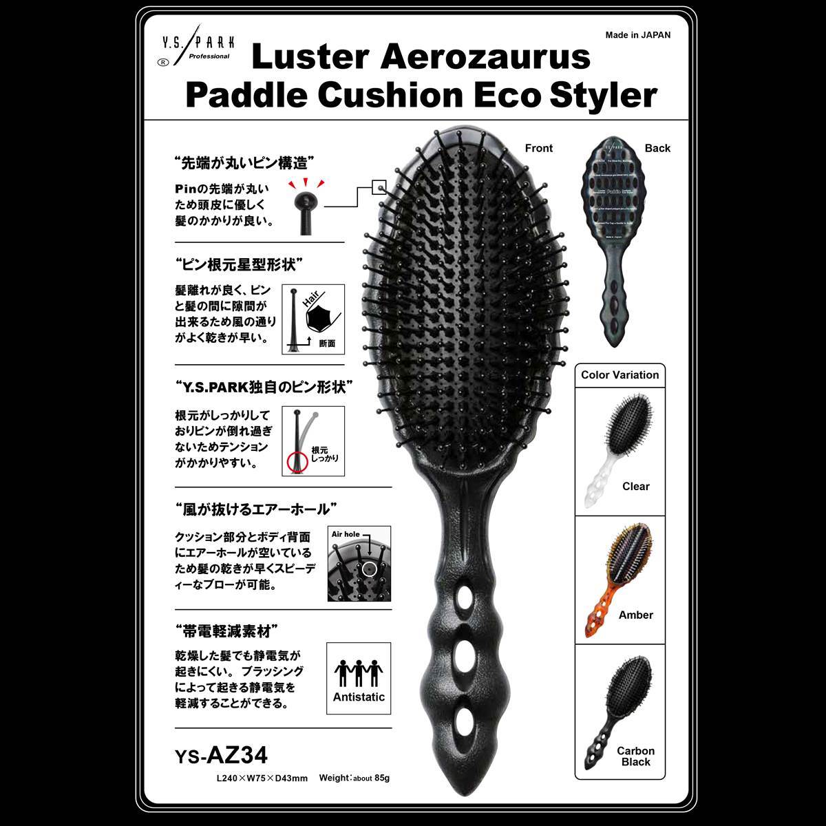 商品名:YS-AZ34 ラスター エアロザウルス パドルクッションエコスタイラー(アンバー)《パドルブラシ》