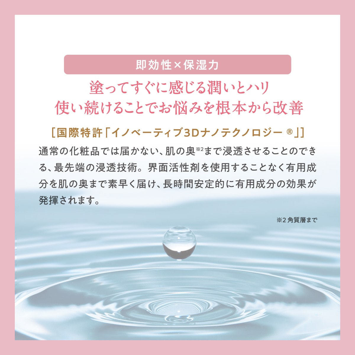 優れた浸透力があり、肌にスーッと馴染み、シルクのような滑らかな肌触りに。
