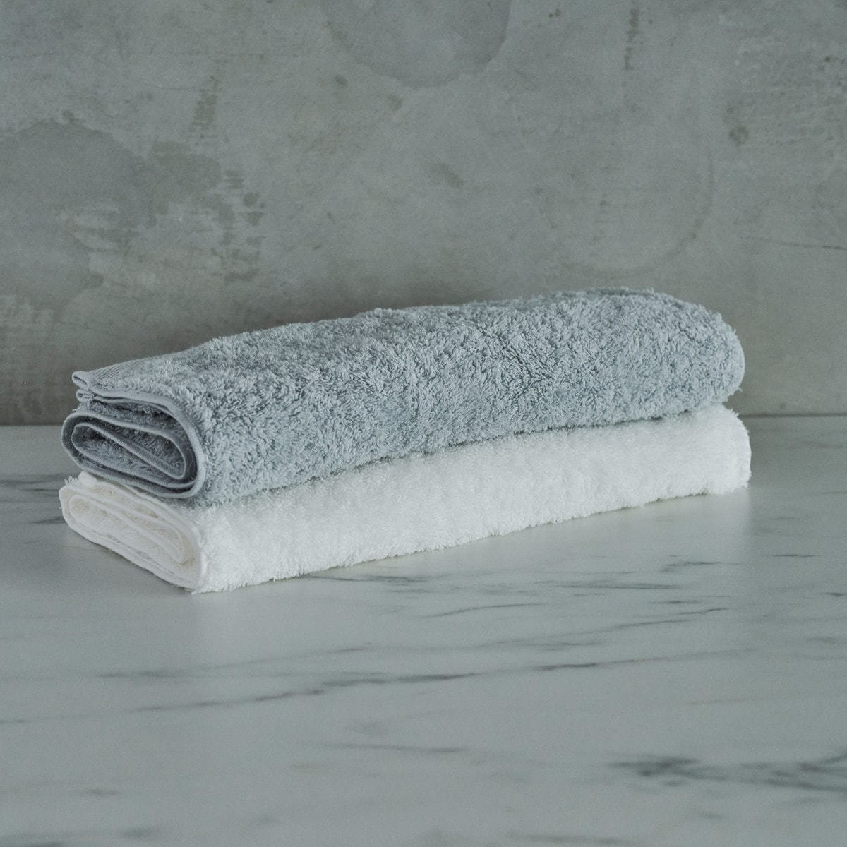 通常の糸にはない構造の特殊な糸は、空気をたっぷりと含んでいるので、ボリュームと軽量感、吸水性、毛羽落ちの少なさなど、良いところを全部かなえた「魔法のタオル」です。