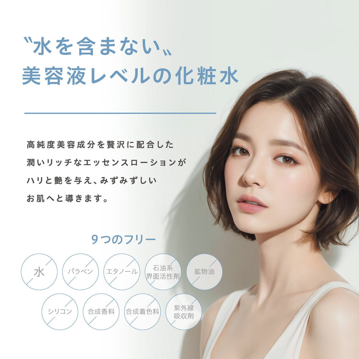 高純度美容成分を贅沢に配合した潤いリッチなエッセンスローションがハリと艶を与え、みずみずしいお肌へと導きます。