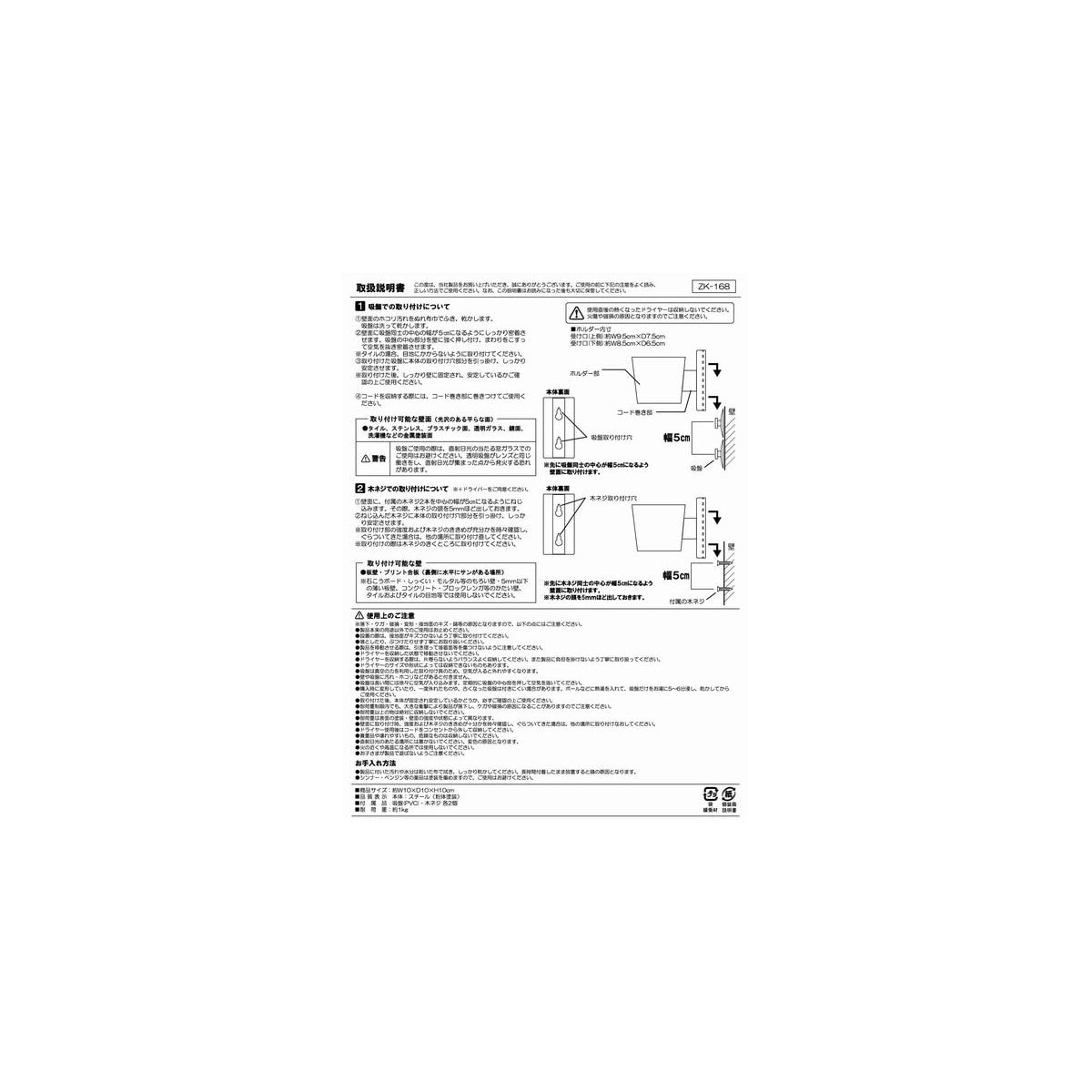 ※石膏ボード・しっくい・モルタル等のもろい壁、5mm以下の薄い板壁、コンクリートなどの固い壁、タイルおよびタイルの目地などには使用しないで下さい。設置はサロン様のご判断にてお願い致します。