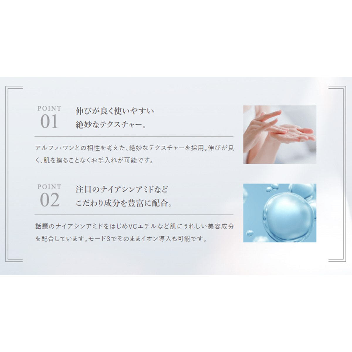 アルファ・ワンのモード2「表情筋エクササイズ」、モード3の「引き締めケア」、モード4の「目元ケア」で使用する美容液。