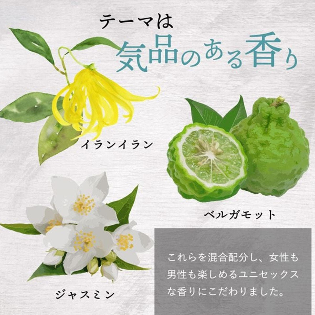 これらを混合配分し、女性も男性も楽しめるユニセックスな香りにこだわりました。