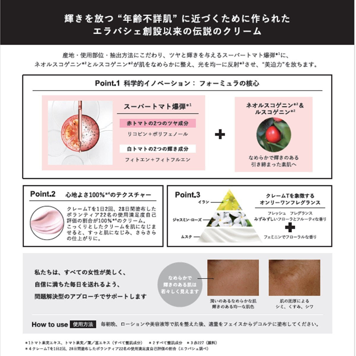 輝きを放つ‟年齢不詳肌”に近づくために作られたエラバシェ創設以来の伝説のクリームがバージョンアップして新登場。