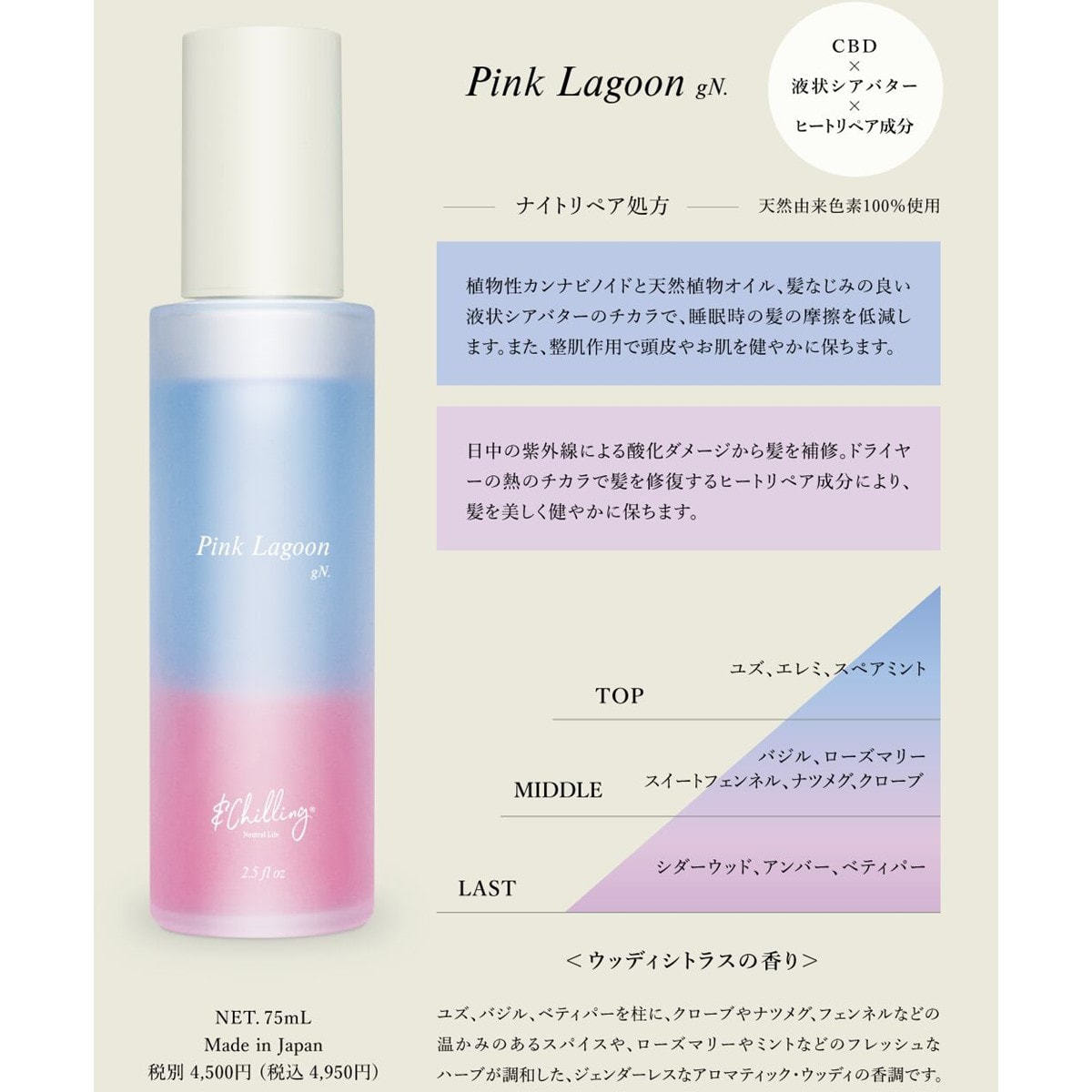 商品名:&Chilling CBD パフュームトリートメント ピンクラグーンgN. 75ml