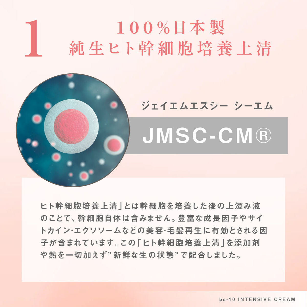 日本の再生医療技術から生まれた貴重な100%日本製「純生ヒト幹細胞培養上清」を高濃度で配合。