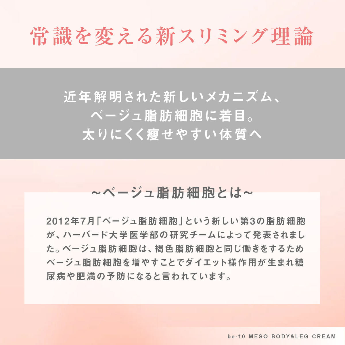 近年解明された新しいメカニズム、第3の脂肪細胞「ベージュ脂肪細胞」にアプローチします。
