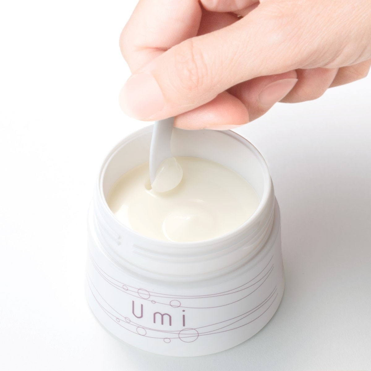 ローションでお肌を整えた後、スパチュラ1杯分(小豆大)を手の平に取ります。