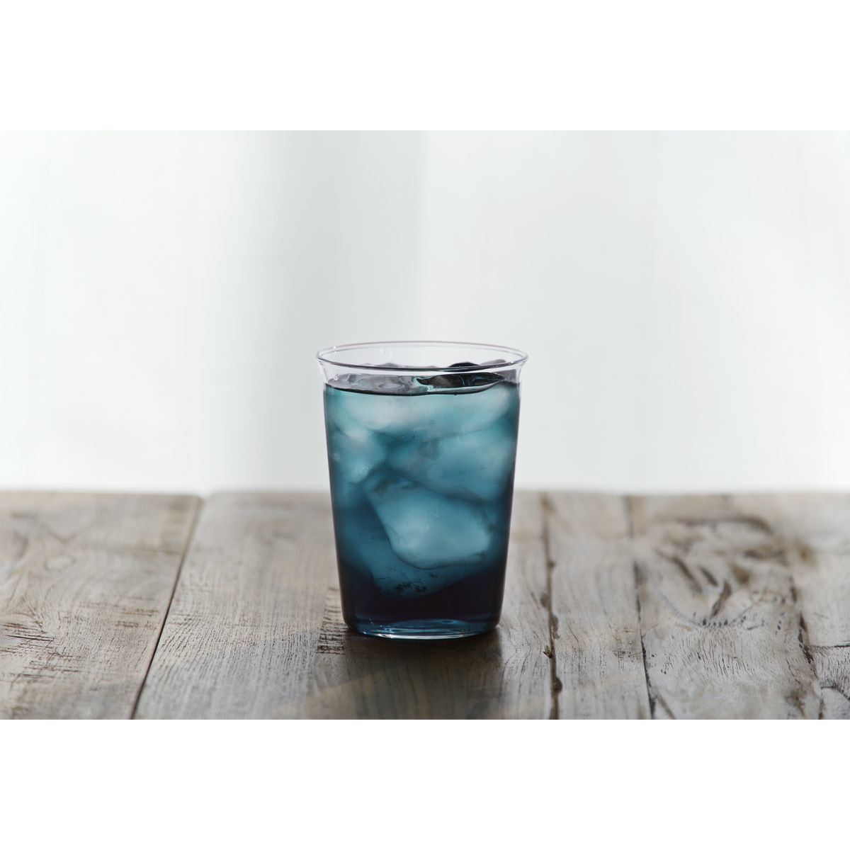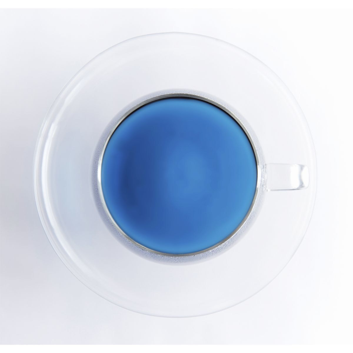 ピカイティーに、トロピカル&ローゼルのドライフルーツをトッピングするとお茶の色が青から紫色に変化します。