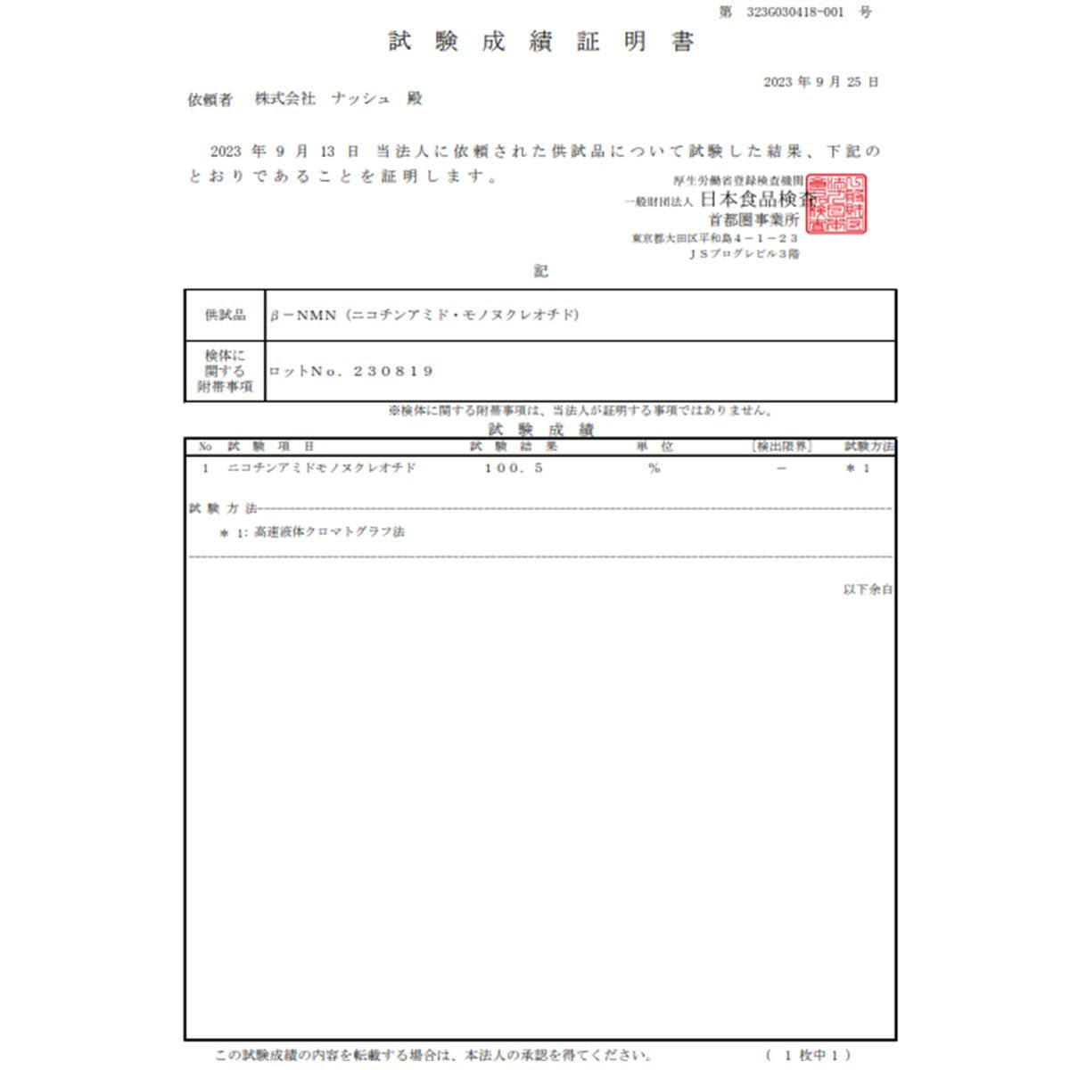 ■NMN純度99.9%