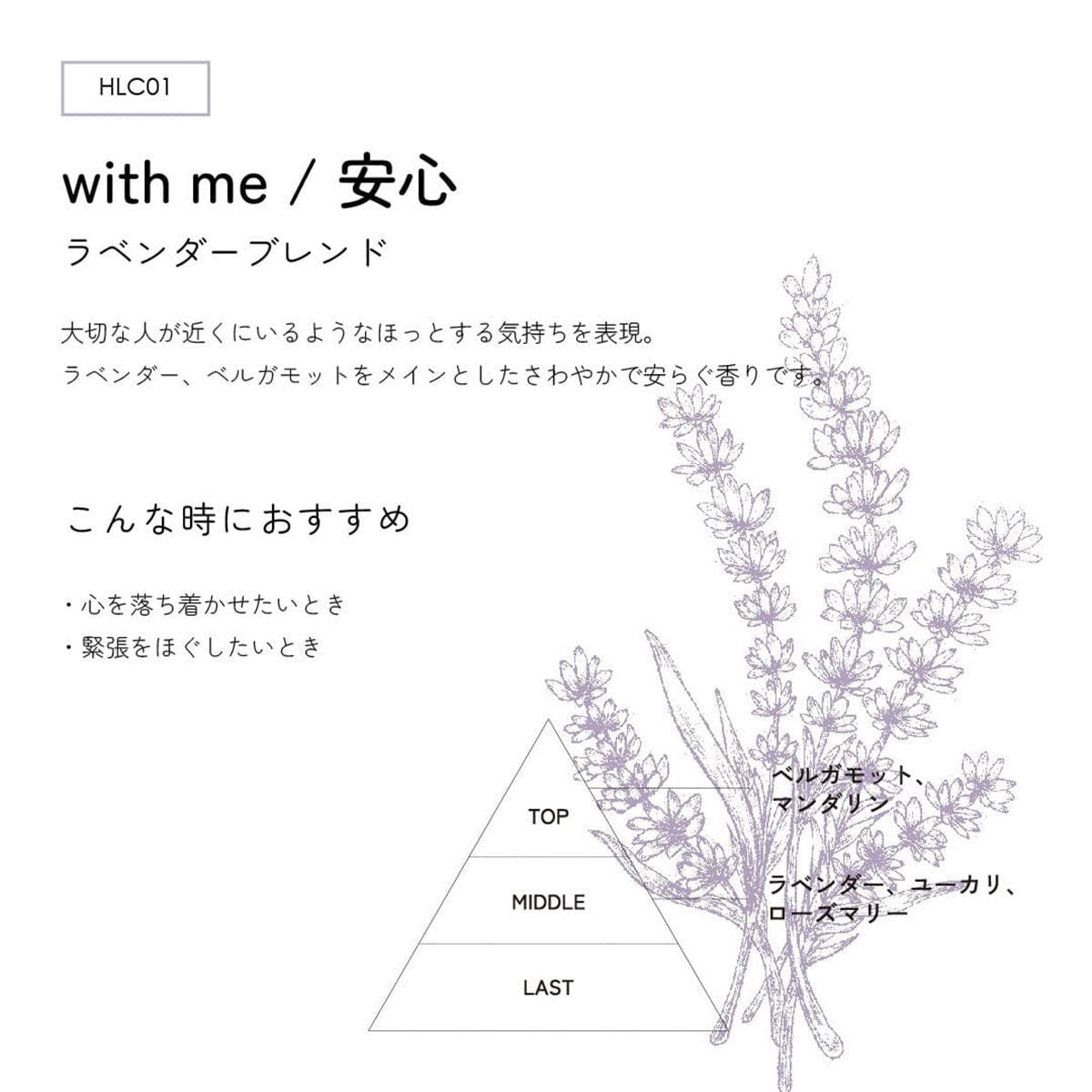 ラベンダー、ベルガモットをメインとした、さわやかで安らぐ香りです。