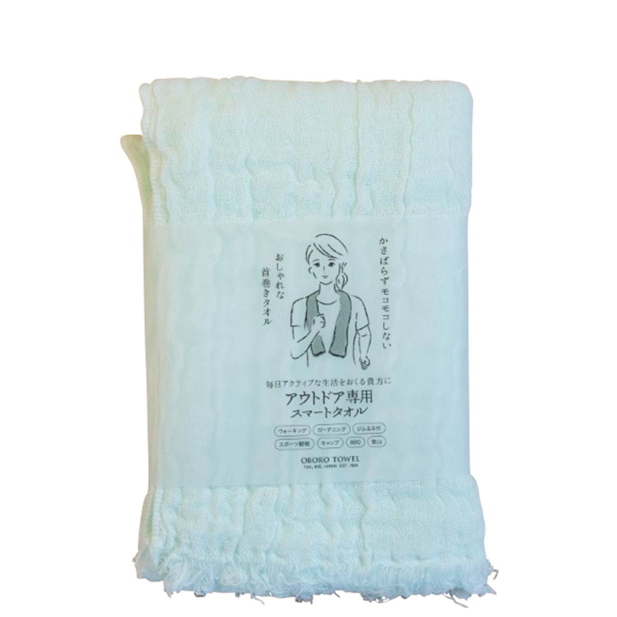 「スマートタオル」とはおぼろタオルの独自製法によりうまれた、かさばらずモコモコしない吸水・速乾に優れた、おしゃれな首巻きタオルです。