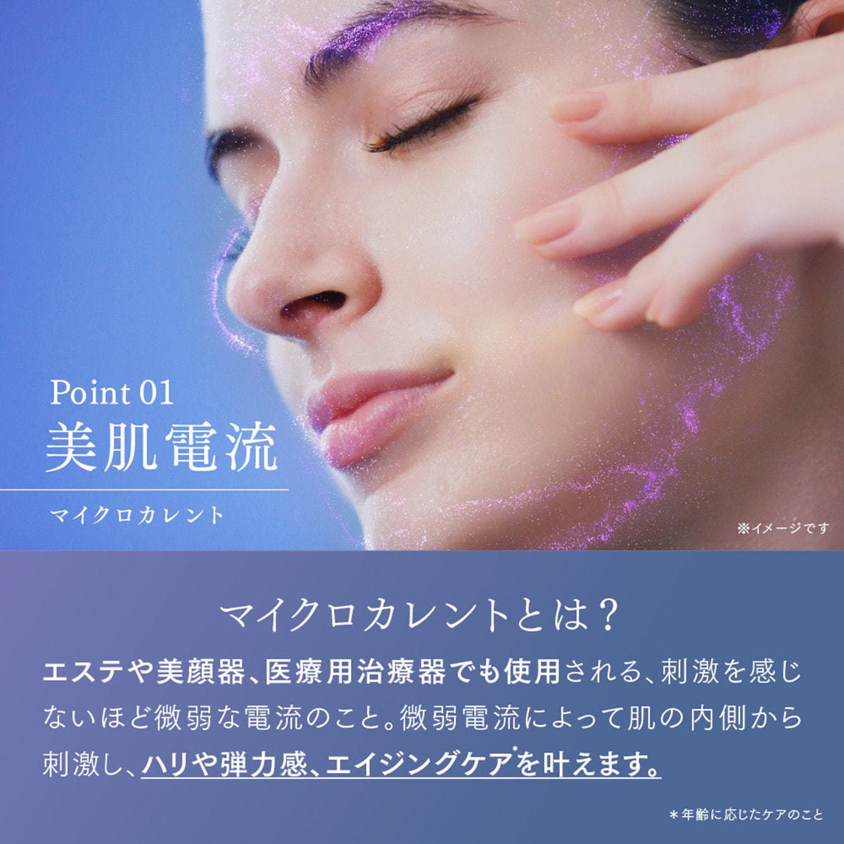 美顔器にも搭載されている微弱電流が年齢と共に緩やかになる“肌メカニズム”に働きかけ、内側から美しさをサポート。