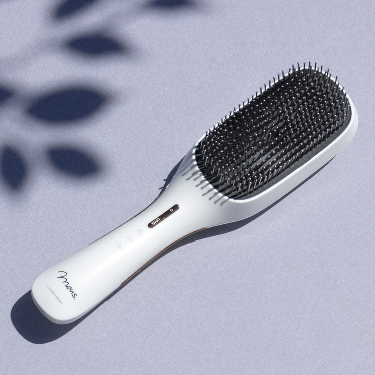 高濃度マイナスイオンをブラシの中央から満遍なく放出し髪の毛に潤いを与えます。